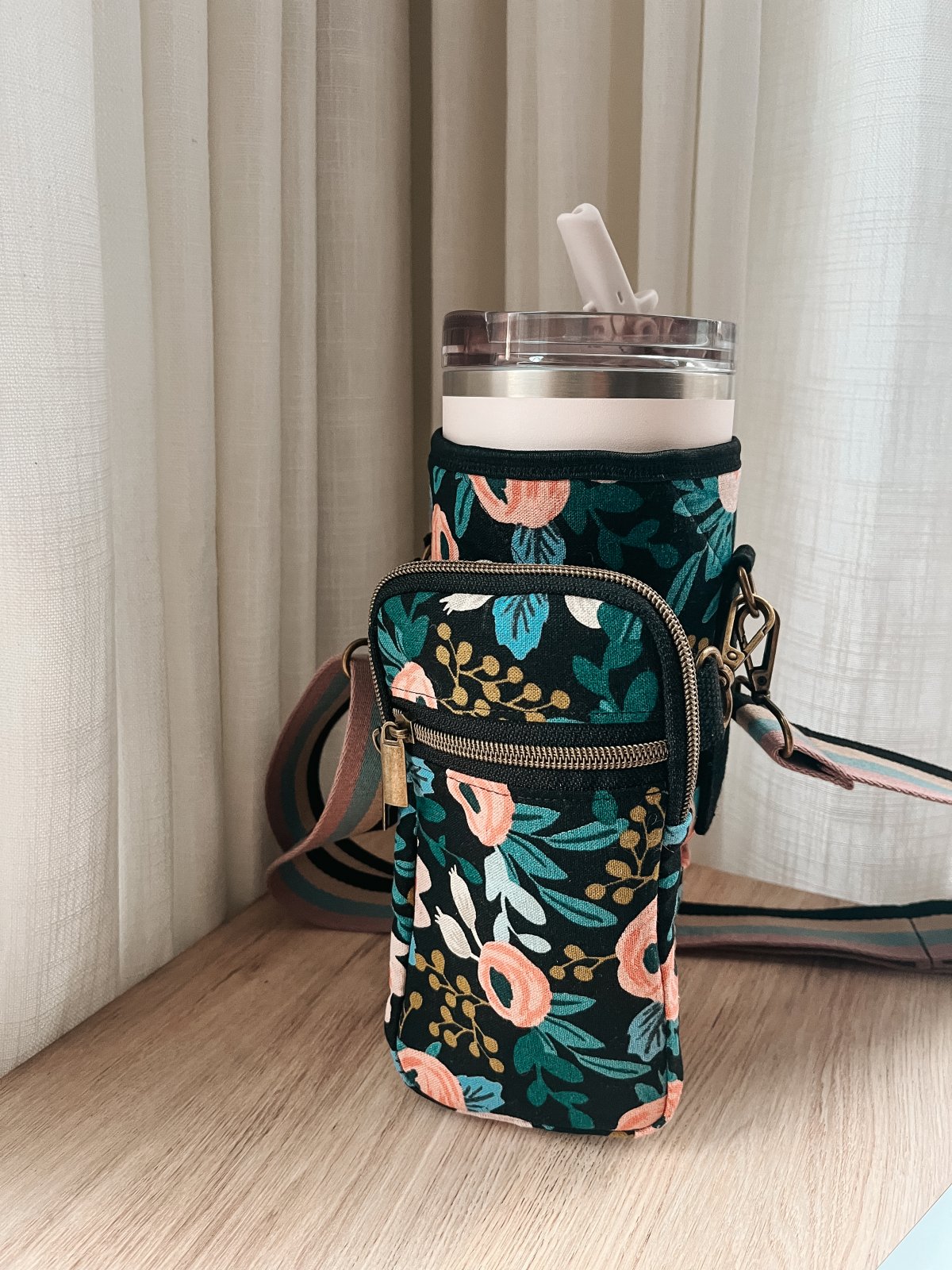 This innovative carry-all is a great solution for carrying your drink and essentials all in one space. The detachable cell phone zipper pocket adds to its versatility.